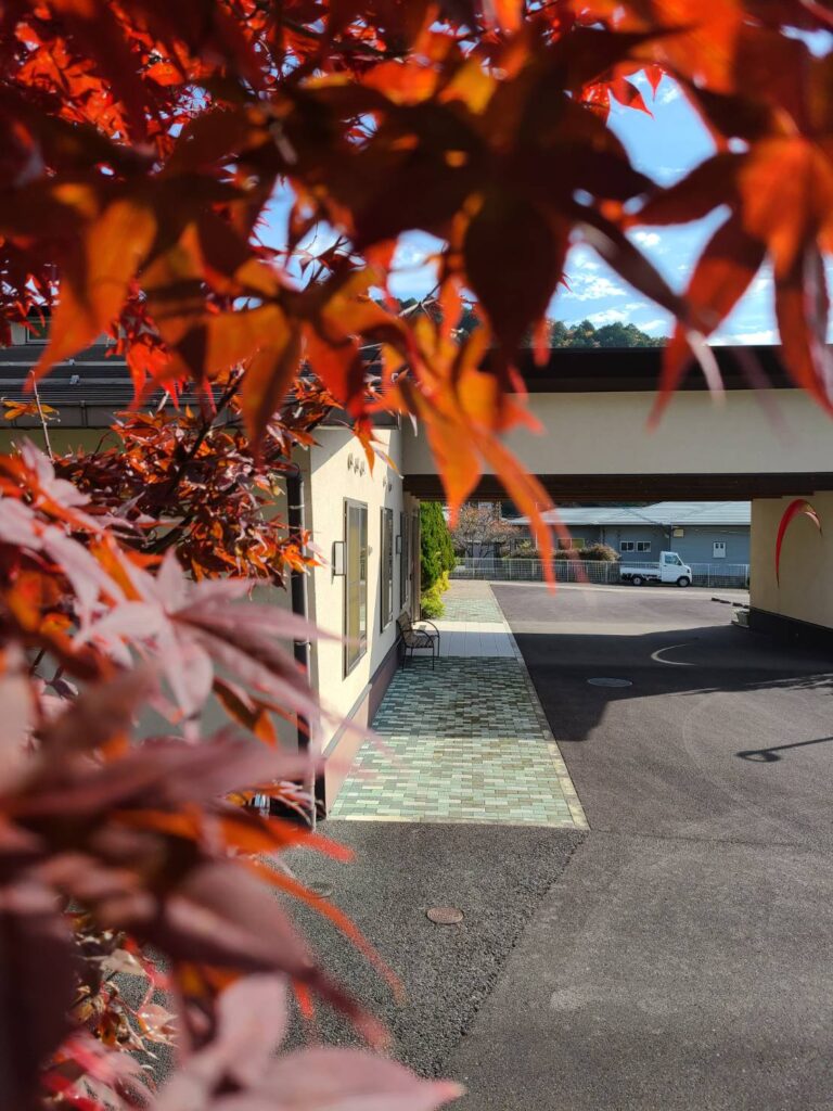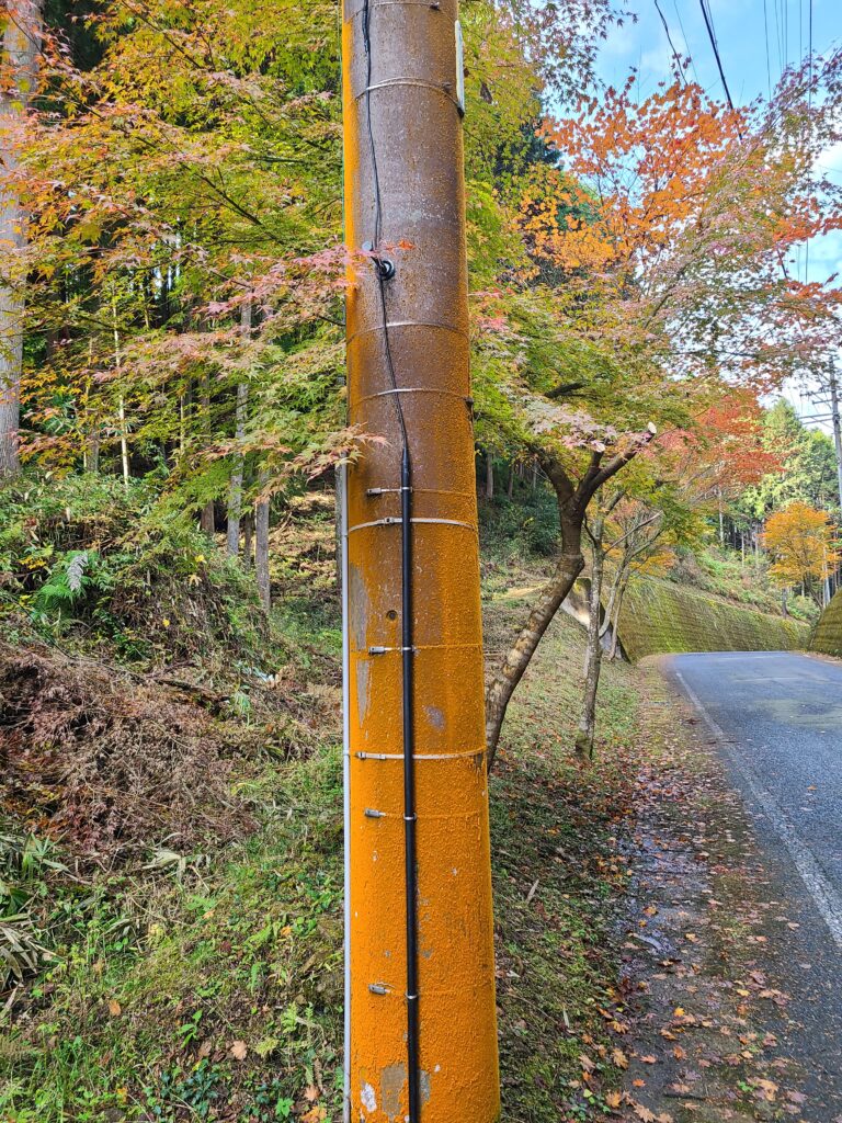 老健のカエデは広葉まっさかり。当地域の峠の電柱も例年通りツブダイゴケにより紅葉?暖かい日が続くせいか、今年は長く紅葉が楽しめているような気がします。