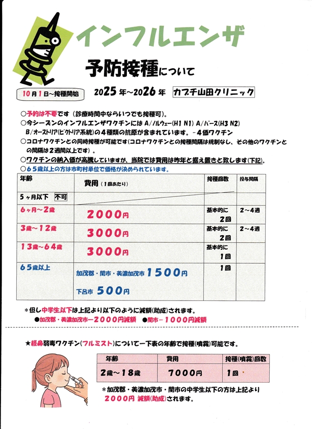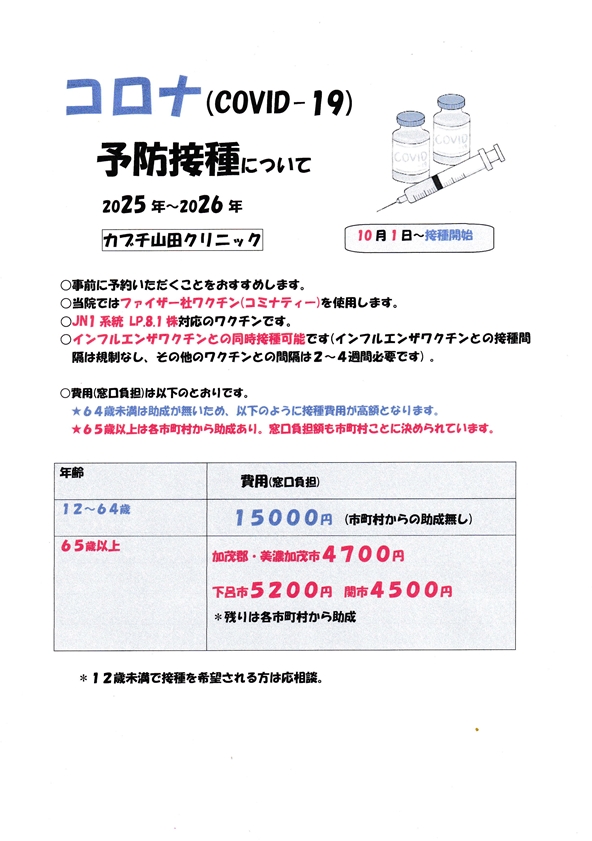 現在クリニックでインフル及びコロナの予防接種を行っています