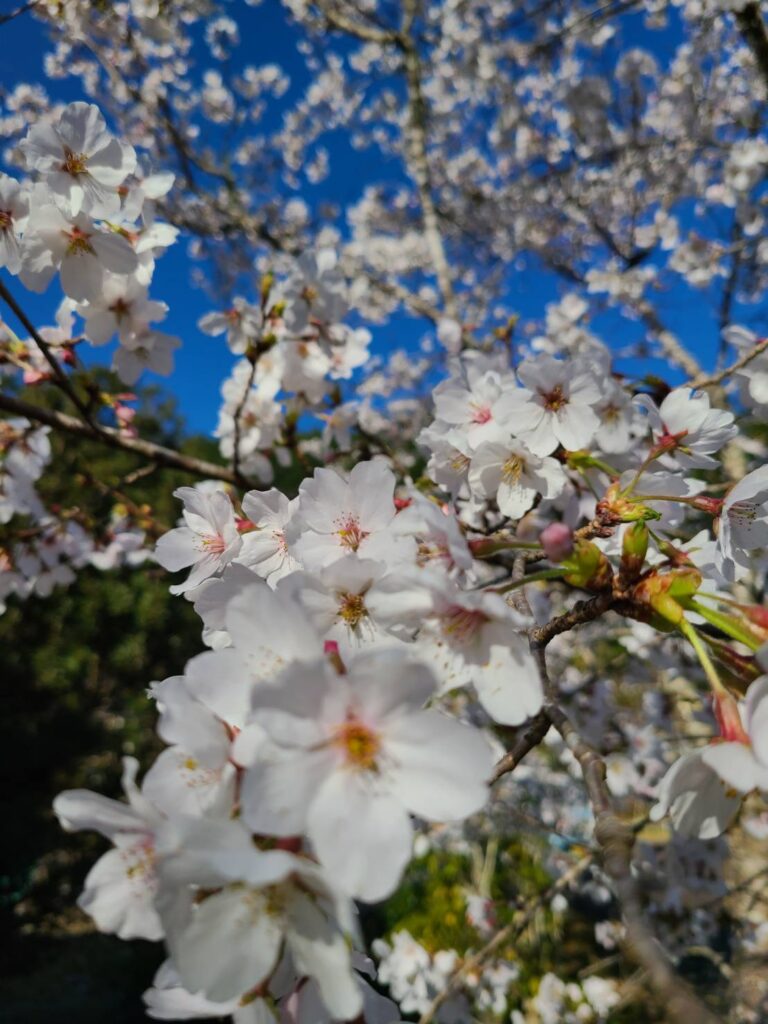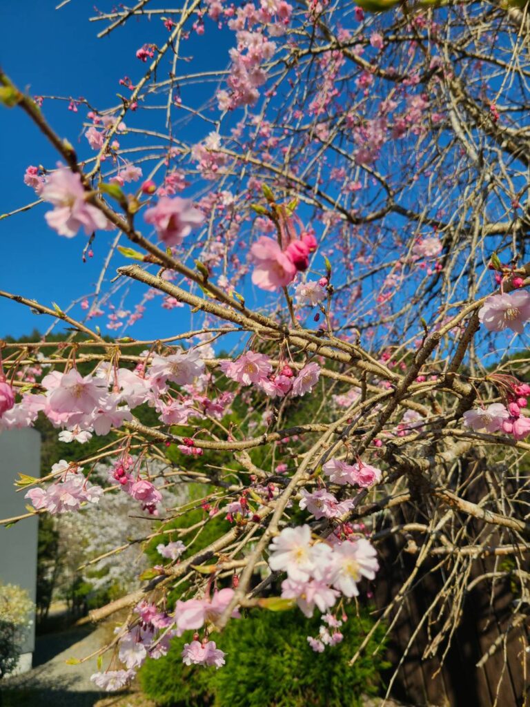 当敷地内の左から染井吉野(大)・しだれ桜・緋寒桜・染井吉野(小)です。昨年末に大量に枝打ちをしたので咲き具合を案じていましたが、問題なし!