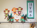 今年は申年ということでちぎり絵でサルをつくりました!門松も鏡餅もすべて利用者様の作品です。