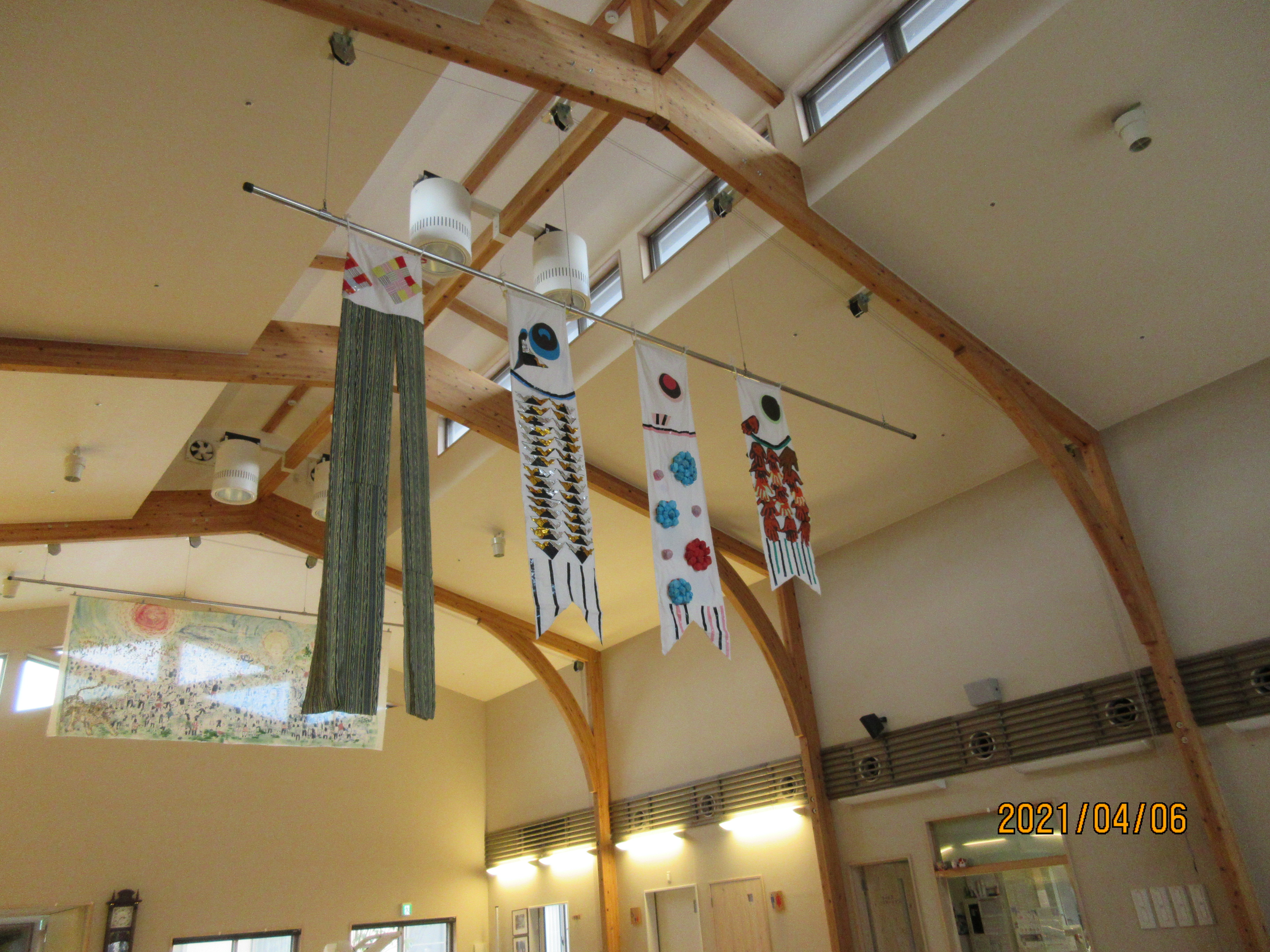 穂の壁面と大ホールに春の掲示物が登場しました。
