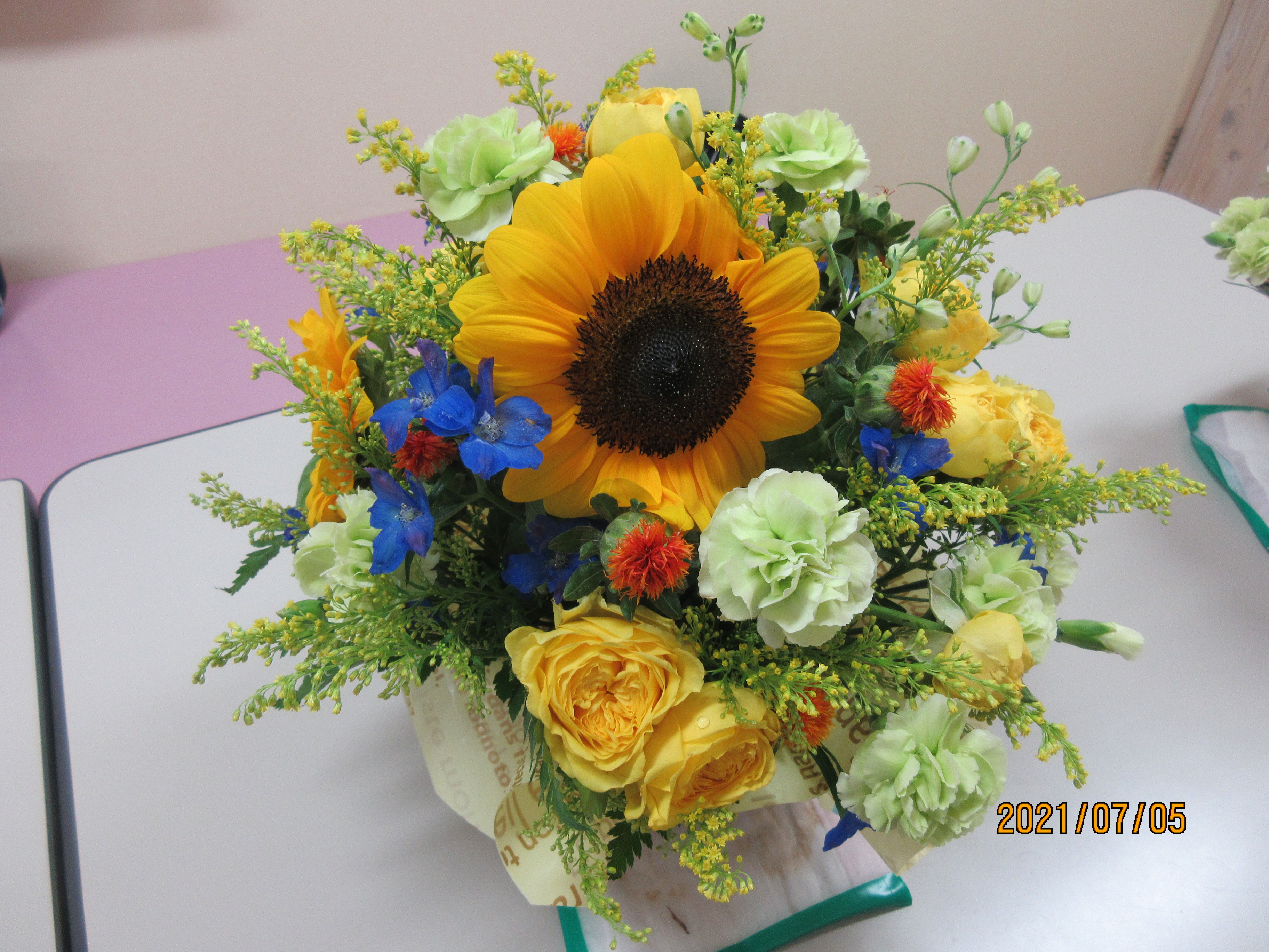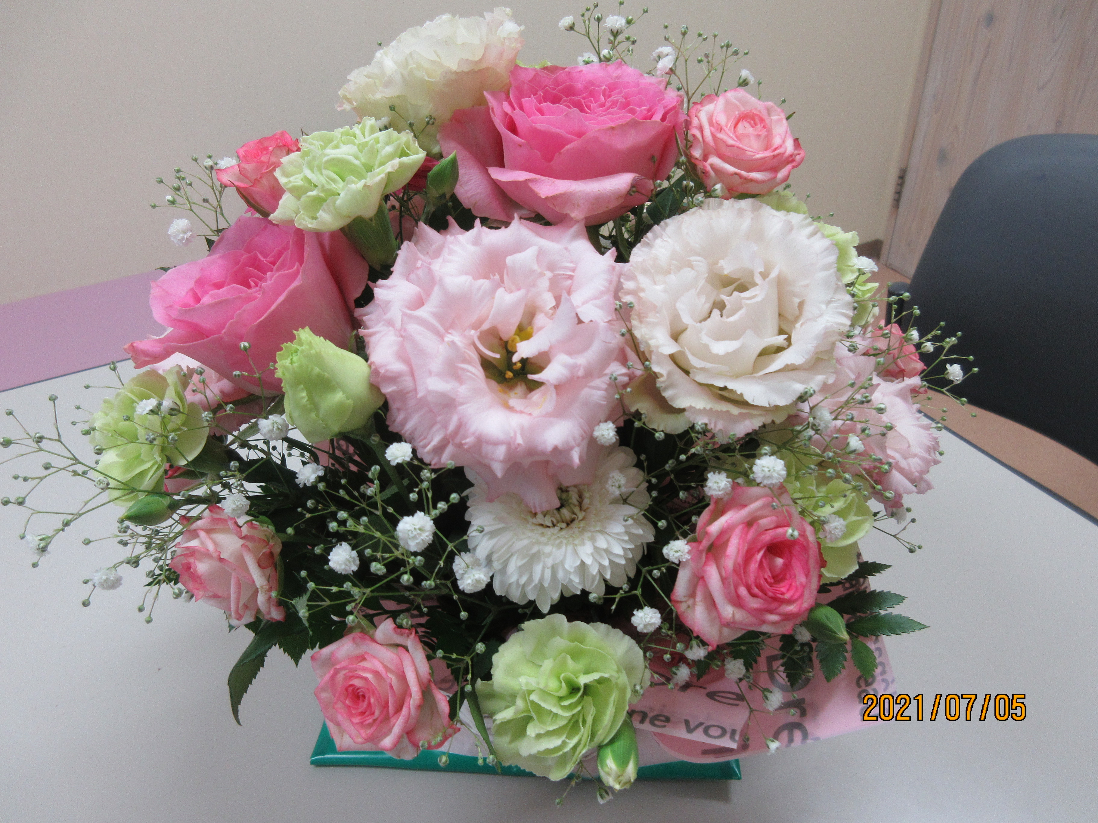 こんなに素敵なアレンジメントフラワーをご利用者様の息子様から頂きました。