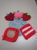 手始めに、アクリルたわしというのでしょうか?可愛らしいイチゴやお花の形の作品を作り上げました。