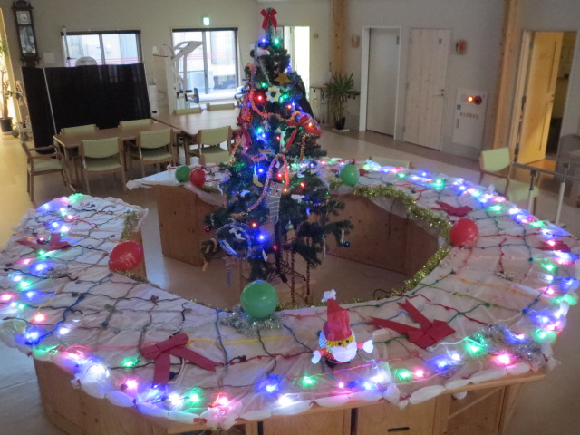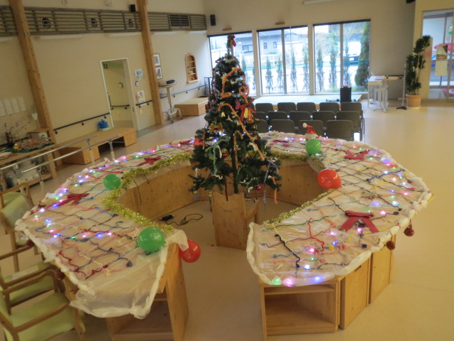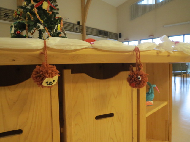 飾りつけは職員が行いましたが、円テーブルの毛糸の作品は利用者様に編んで頂きました♪