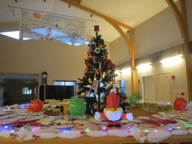 大ホールにクリスマスツリーとイルミネーションを飾りました!!