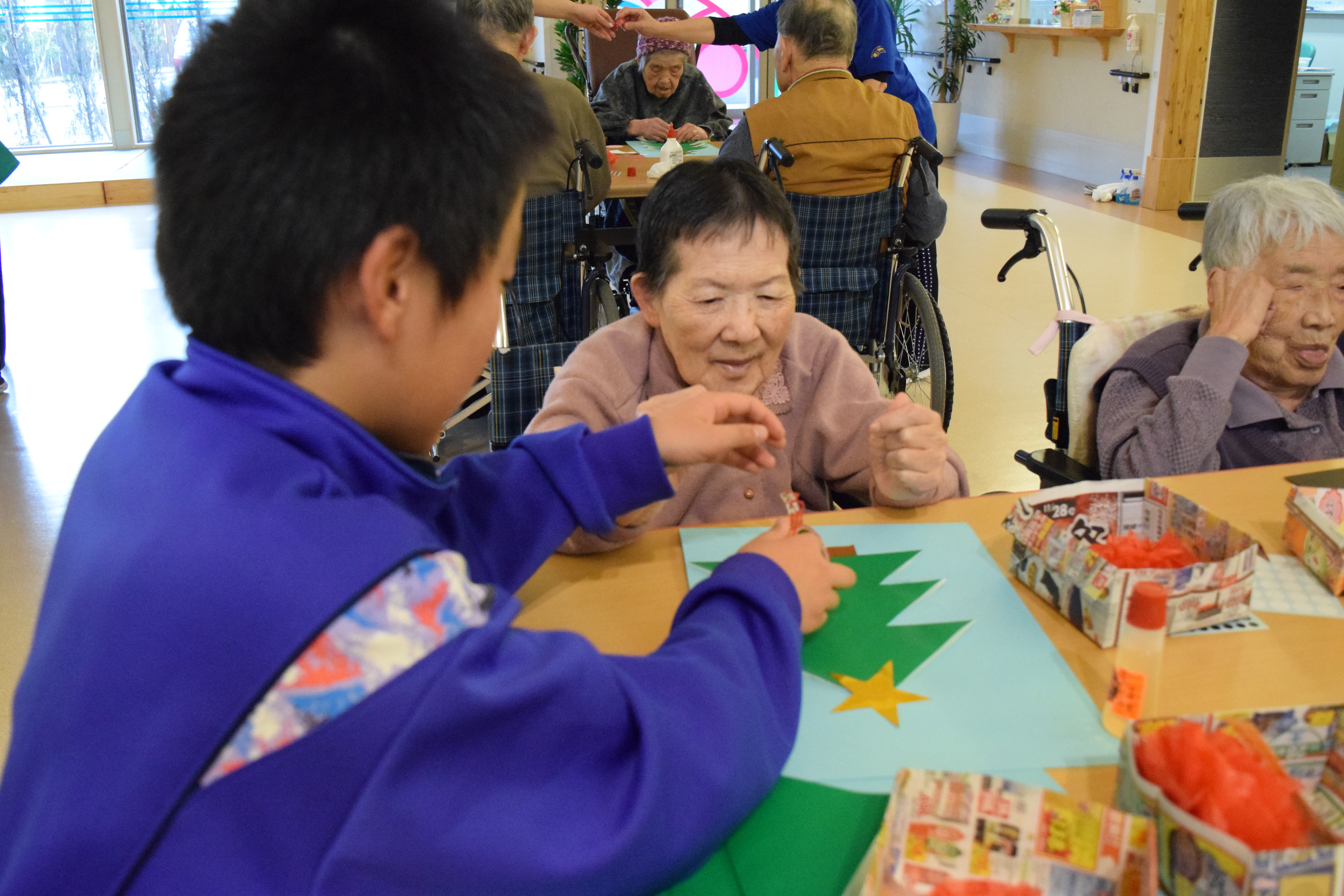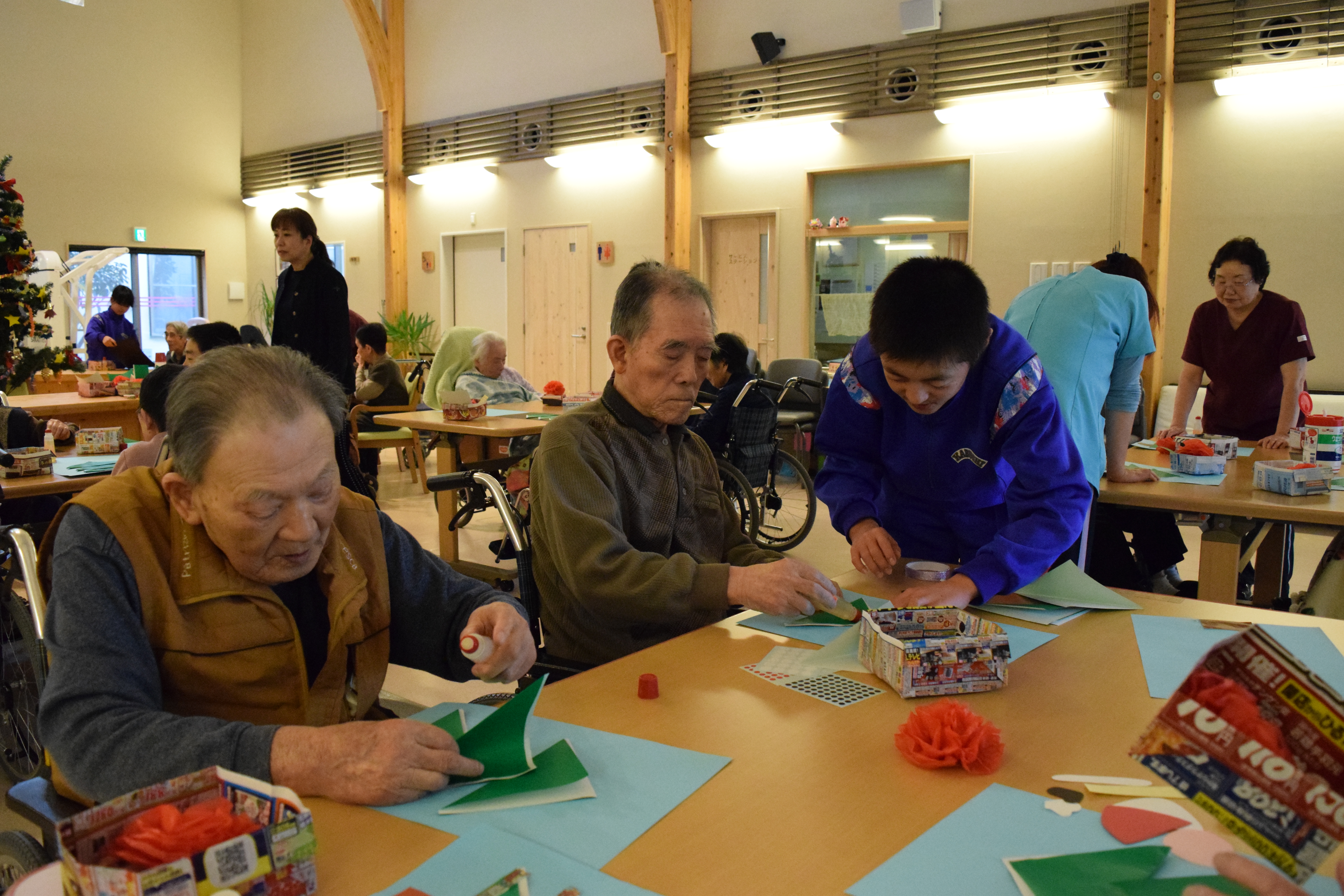 今年は、クリスマスの飾りを一緒に作ってくださいました。短い時間ではありましたが、中学生の生徒さんとの楽しいひと時をご利用者様皆さま楽しまれていました。