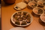 もち米に食紅で淡いピンク色を付けて炊いて、手作りのあんこに桜の葉を用意して。