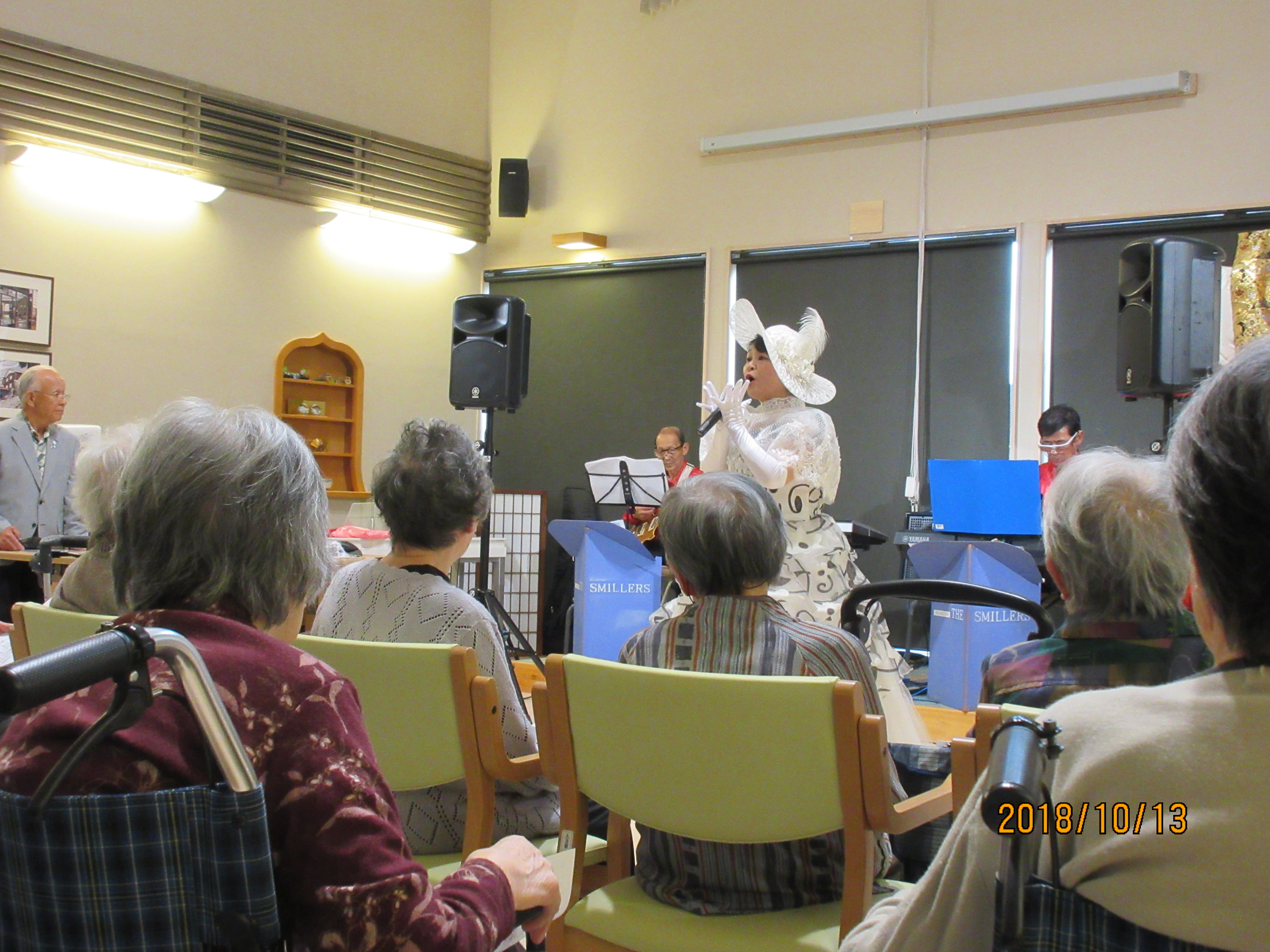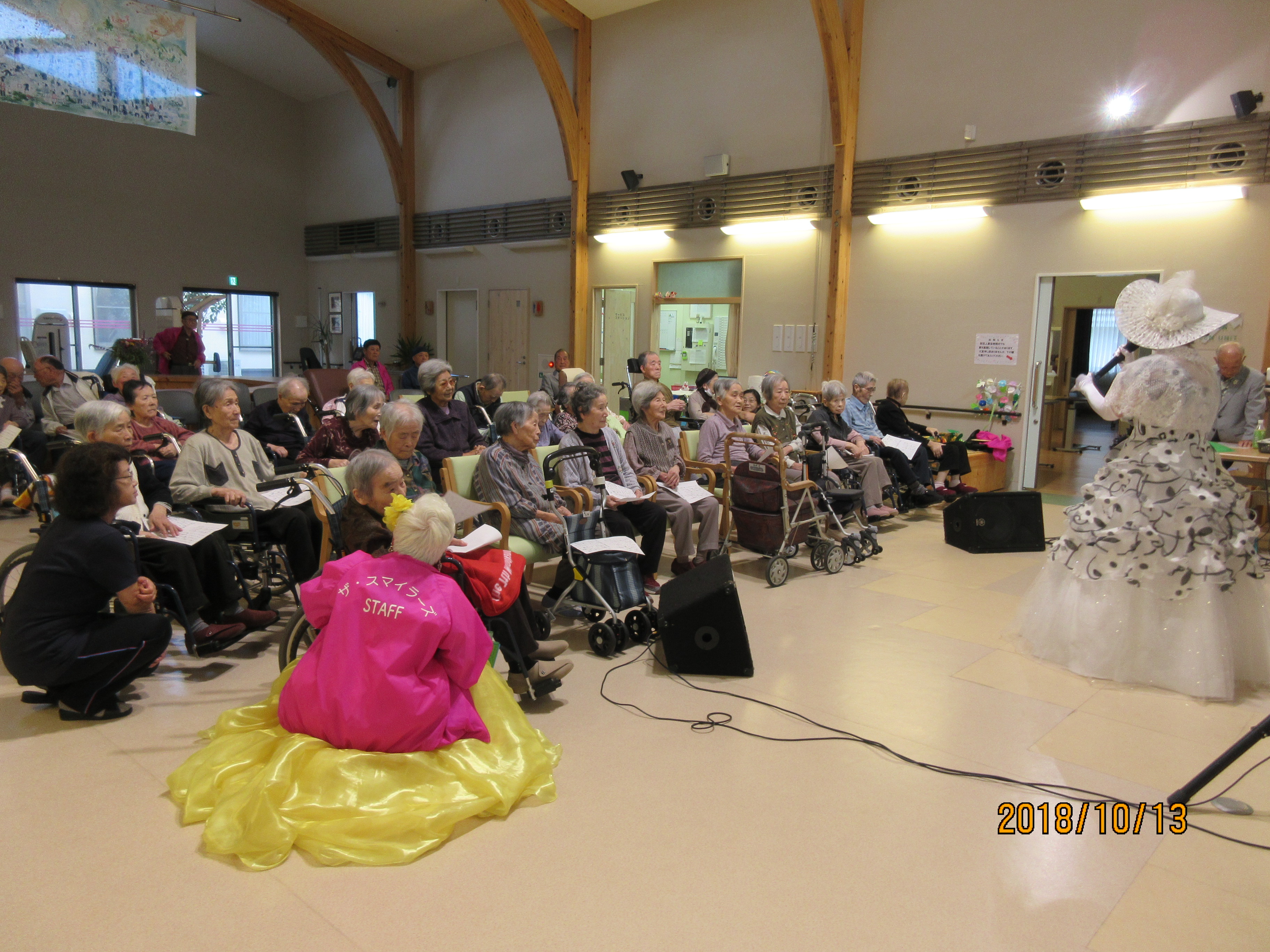 懐かしいお顔に、手をとり話しかけるご利用者様も。 素敵な衣装に、素敵な歌声ありがとうございました。