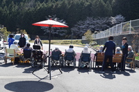 4月9日 午後から、外に出てほぼ満開となった桜を見ながらお抹茶とお菓子を頂きました。