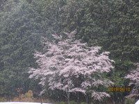 うそのような本当の話です。 写真分かりますか? 桜と雪の共演です。