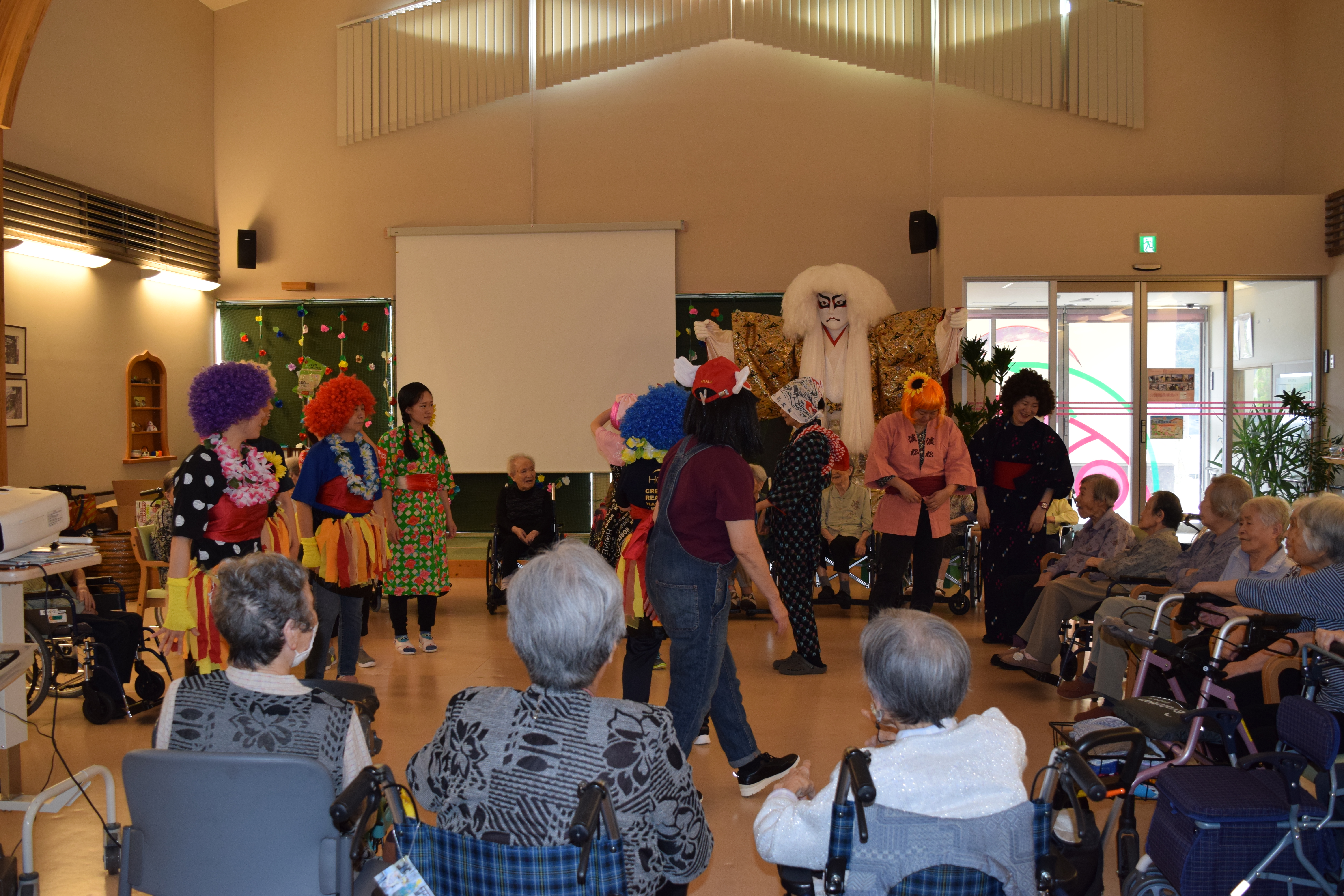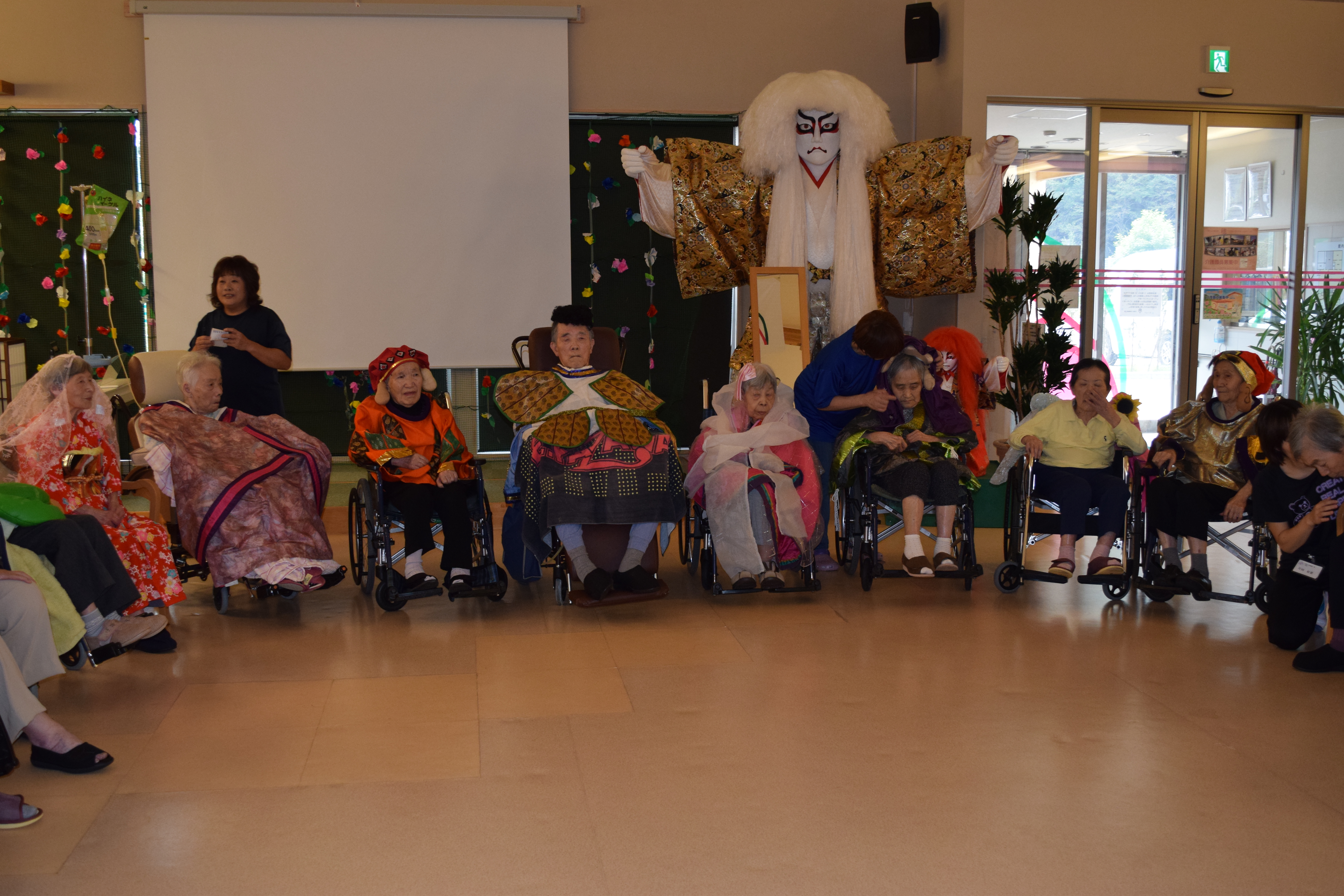 今年は、カラオケを楽しんで頂いたり、職員が仮装して踊り(炭坑節)を披露しました。
