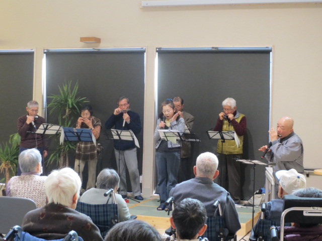 皆さんは、3月2日に神渕の公民館祭りで発表をされるそうです。その練習も兼ねての訪問でしたが、とても伸びやかな歌声と演奏でご利用者様を楽しませてくださいました。