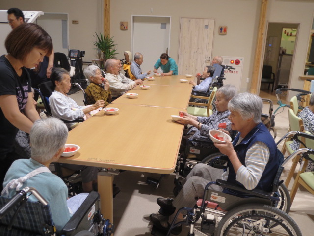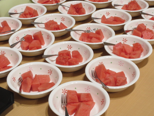 七夕の歌を歌い、スイカ割りをし、みずみずしい甘~いスイカを堪能しました(^-^)v