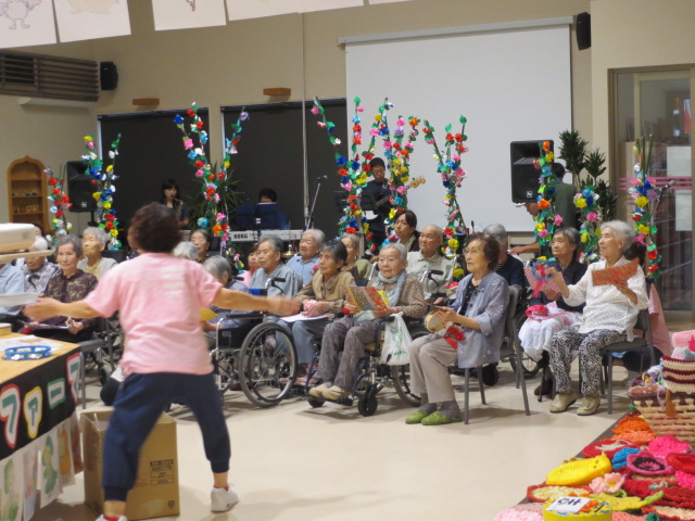 今年は、ご利用者様と職員による合唱と楽器演奏から始まり、バンド演奏そして『ラビラビ』というグループに東京からお越し頂き演奏していただきました。ラビラビの演奏のラストは職員のダンスで盛り上がりました。