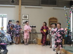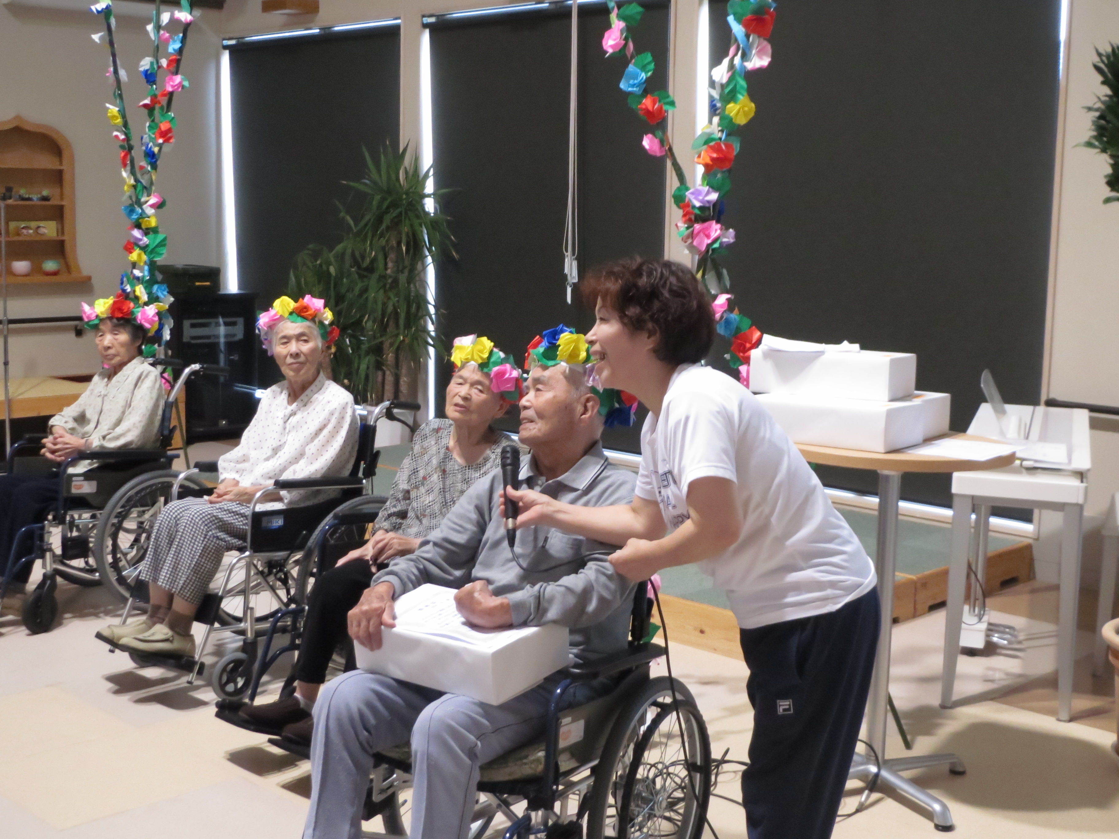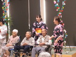 浴衣や甚平に身を包んだ職員による”炭坑節”、そして、京都から来た芸者さんに扮したこれまた職員による芸者ワルツ。ご利用者様皆さんが、笑顔になられた楽しい敬老会となりました。