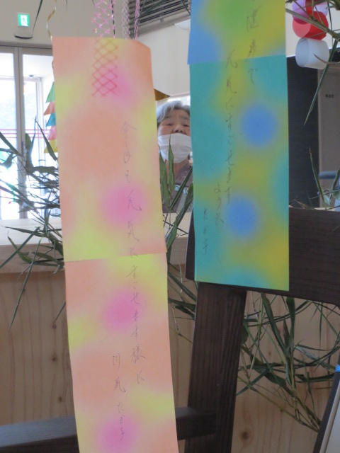 穂でも、皆さんに七夕飾りと短冊に願い事を書いて、飾っていただきました。
