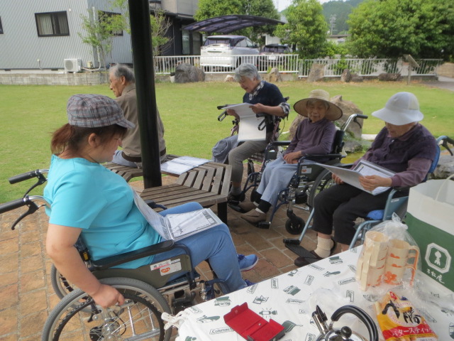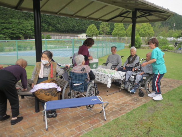 クリニックの隣の広場でお茶会と称して3時のおやつを食べました!!