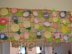 紙に円を書いて、切って、折って、絵の具で染めて、飾りつけ 出来上がったのは??