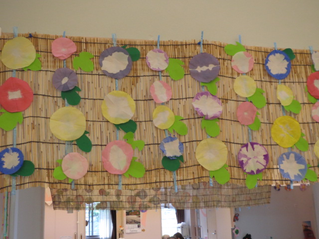 そうです、あさがお すだれに飾ってとても涼しげです。