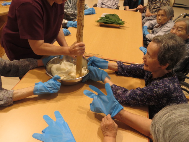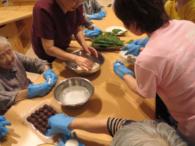 今日は、皆さんで朴葉餅を作りました。懐かしい作業に、作り終わるともっと作りたかった、物足りないわ(笑)という声がするほどでした。