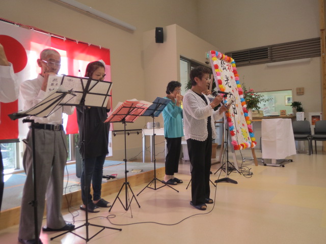 その後、ご利用者様皆様にお楽しみいただく時間として、ハーモニカと共に歌を歌ったり、フラダンスを鑑賞したり、手品を楽しんだりとあっという間に時が過ぎていきました。
