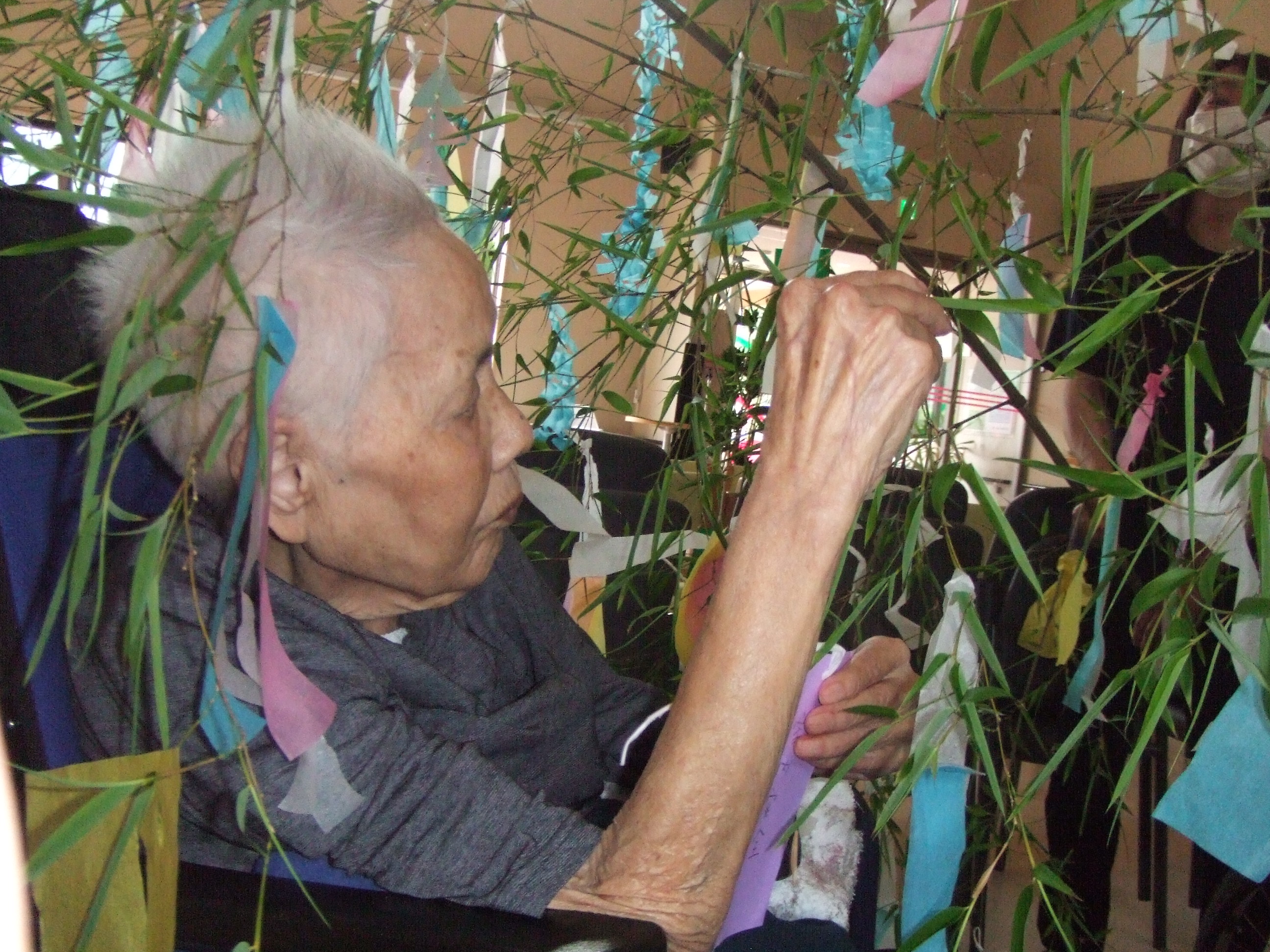 ご利用者様の作られた笹飾りで彩られ、七夕会当日も綺麗な笹飾りの周りで楽しい会を開くことが出来ました。 ・・・七夕会♪につづく。