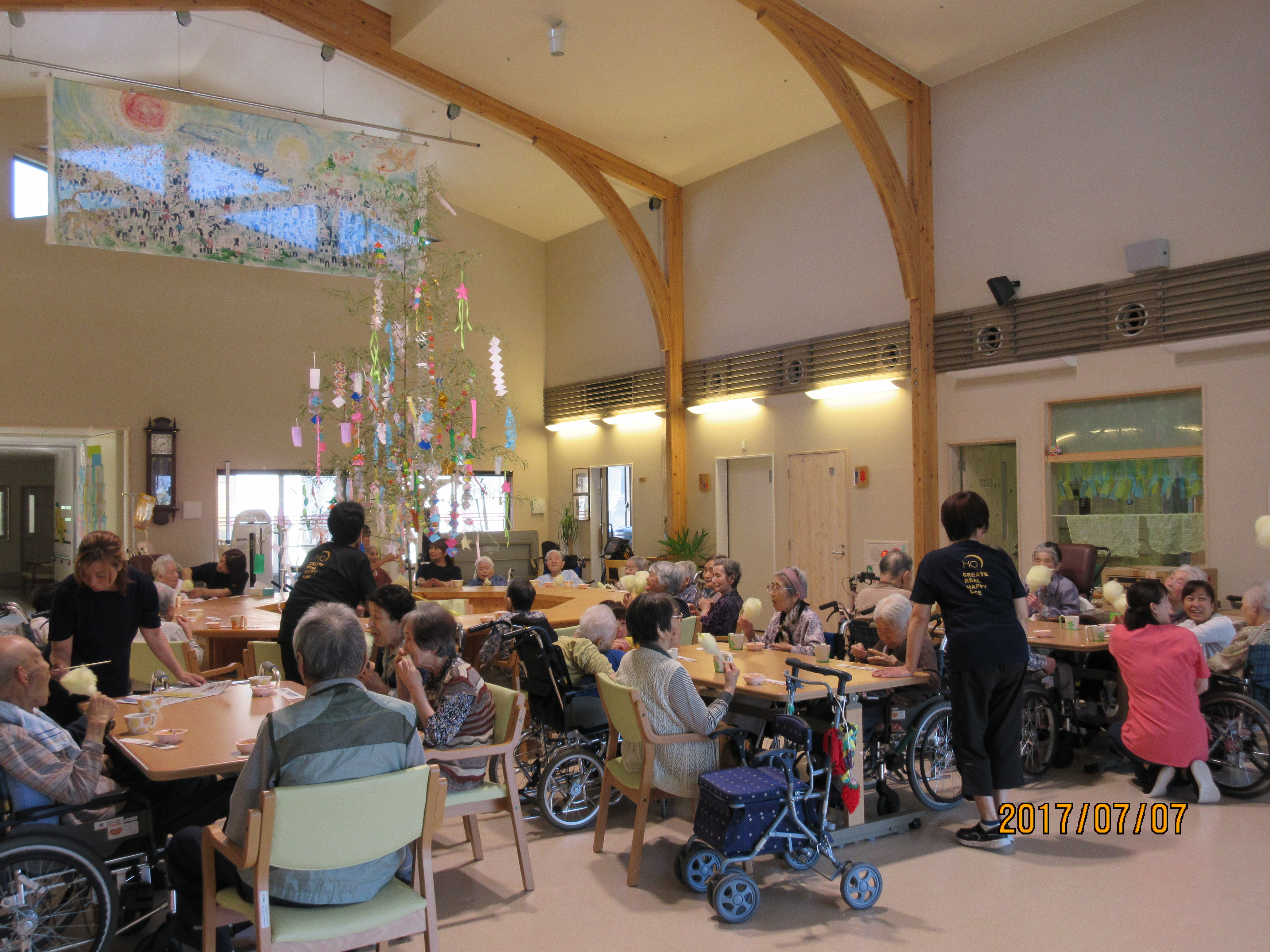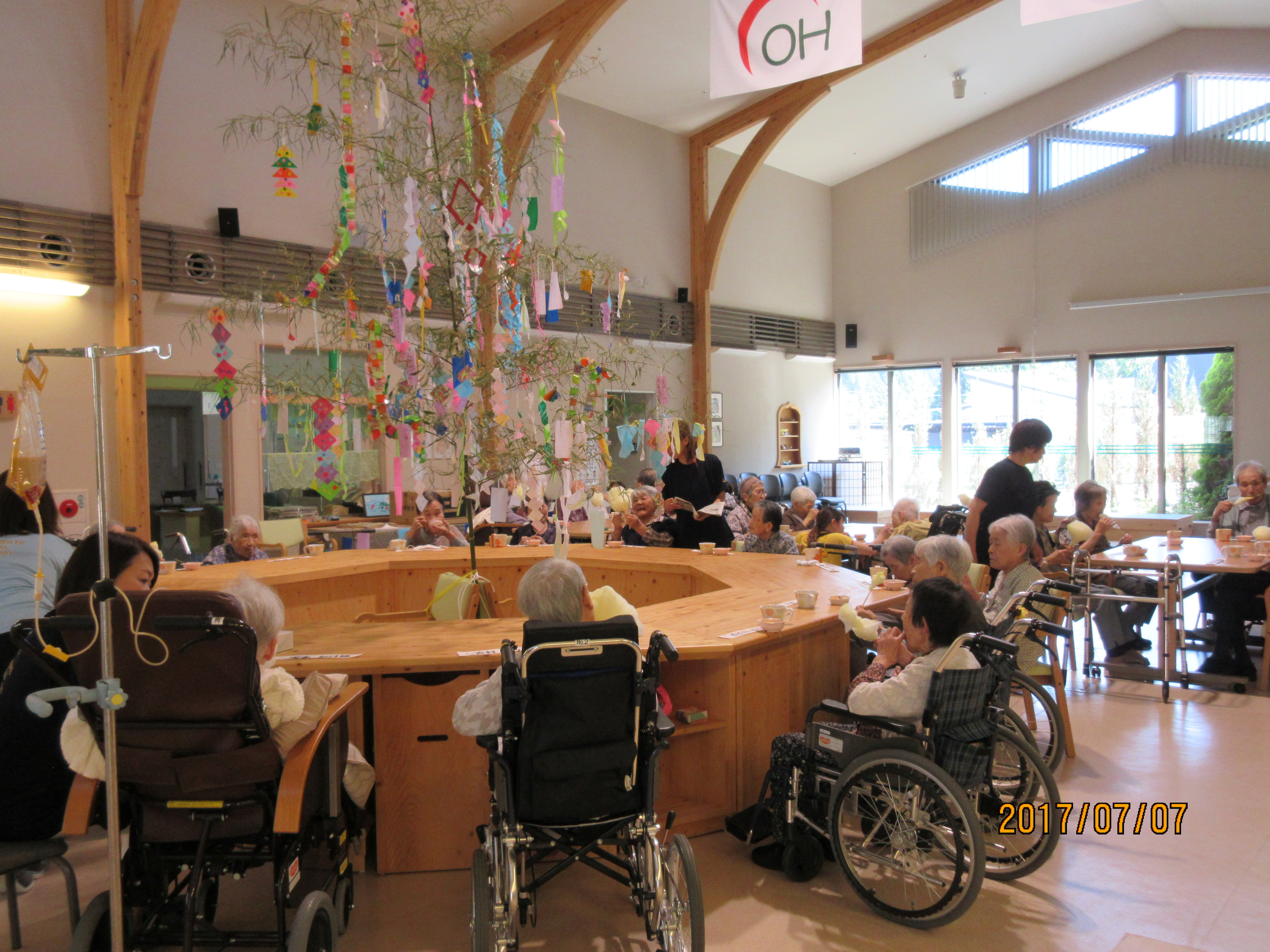 皆さんで飾りつけをした笹飾りのを囲んで、歌を歌いました。