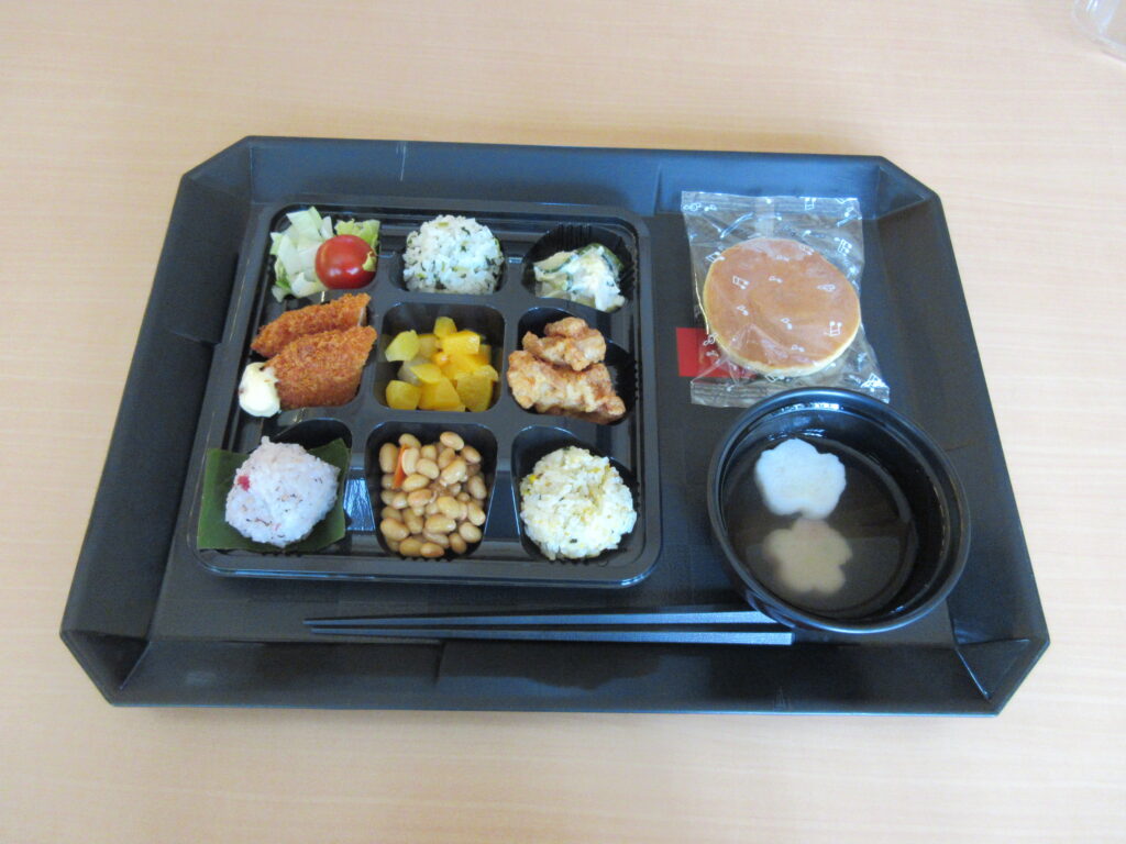 今日はお弁当の日です。9種類の色とりどりのおかずがおいしそうです。