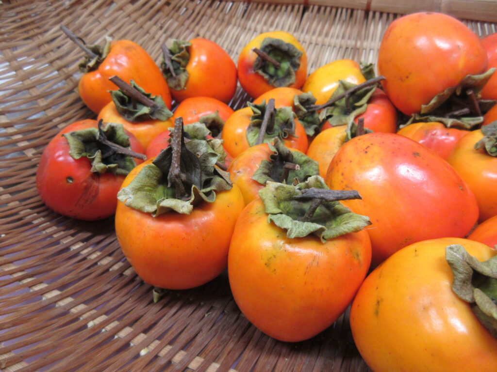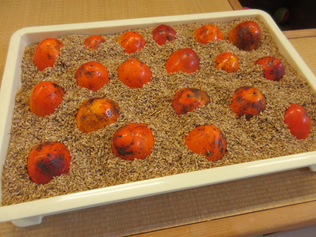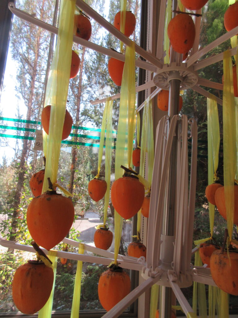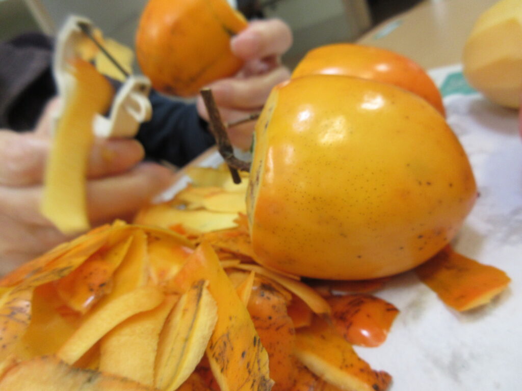 看護師さん宅の大きな柿を、干し柿とずくし柿にするため頂きました