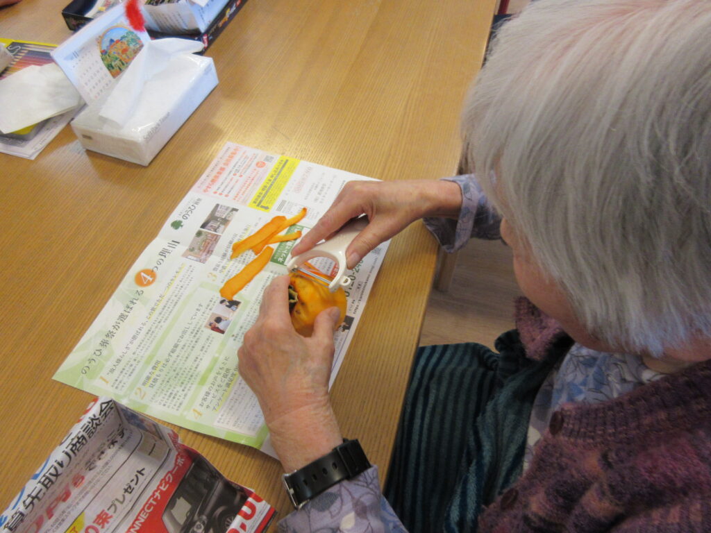 本当は包丁の方が使いやすいけど…といいつつ、ピーラーで頑張って剝いてくださいました